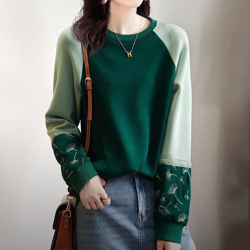 Misc – Bawełniana bluza damska Jesień jednolity kolor sweter z długim rękawem wygodny top wokół szyi blokowanie kolorów modna bluza na co dzień M niebieski