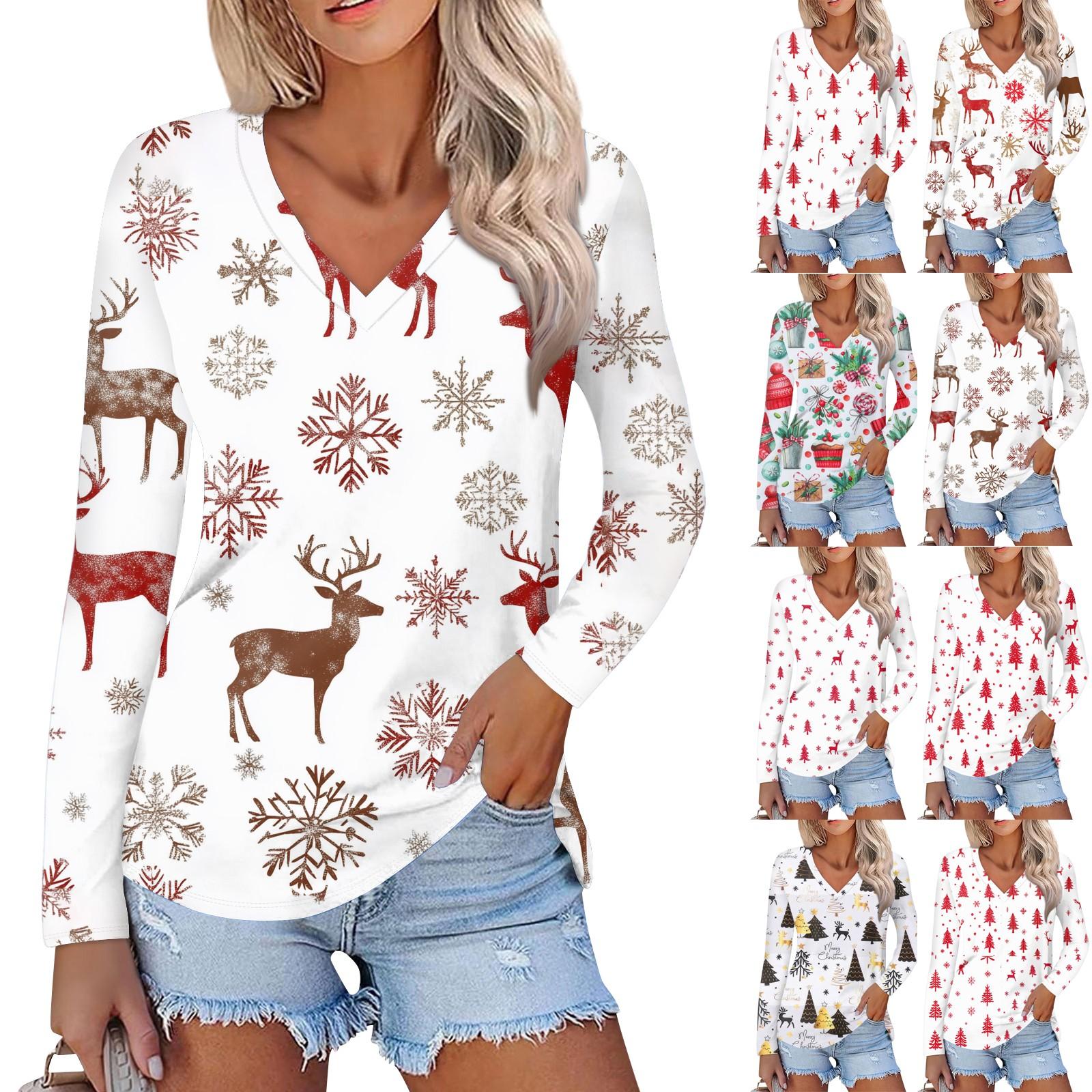 Damska codzienna moda seksowna wygodna świąteczna bluzka z dekoltem w serek i długim rękawem S