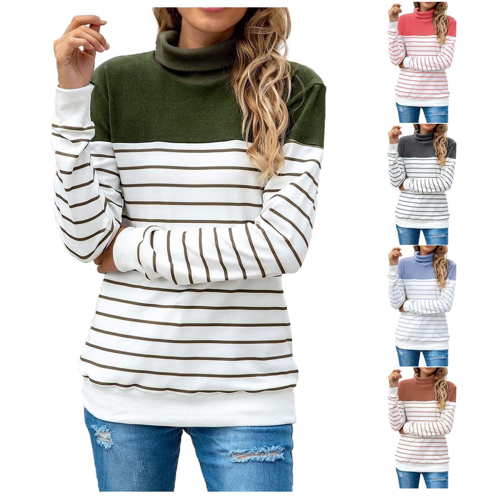Damska modna bluza w paski z patchworku z wysokim kołnierzem i wyściełanym dołem XXL