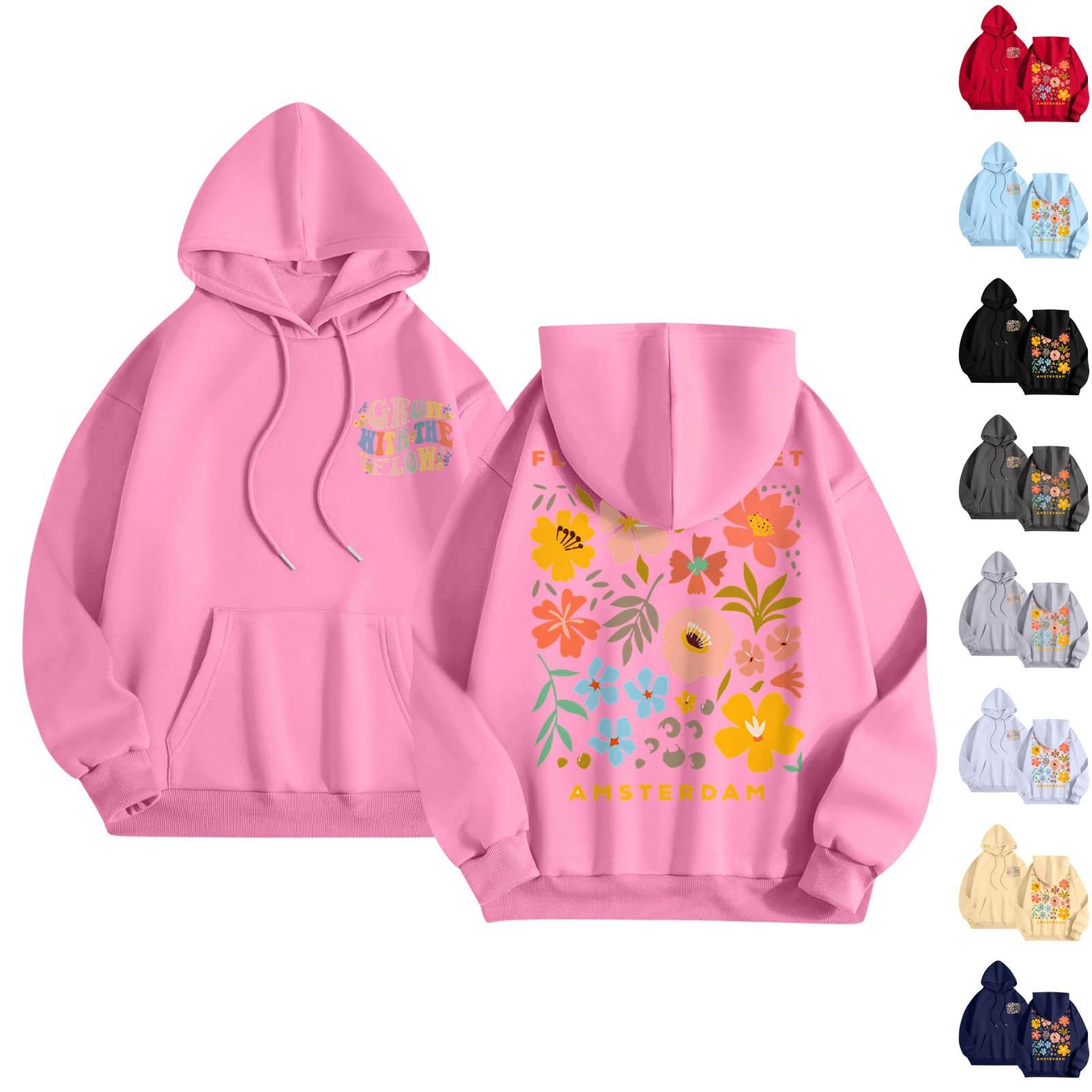 Misc – Ladies Fashion Casual Long Sleeve Printed Round Neck Hoodie Pullover Top With Pockets S beżowy