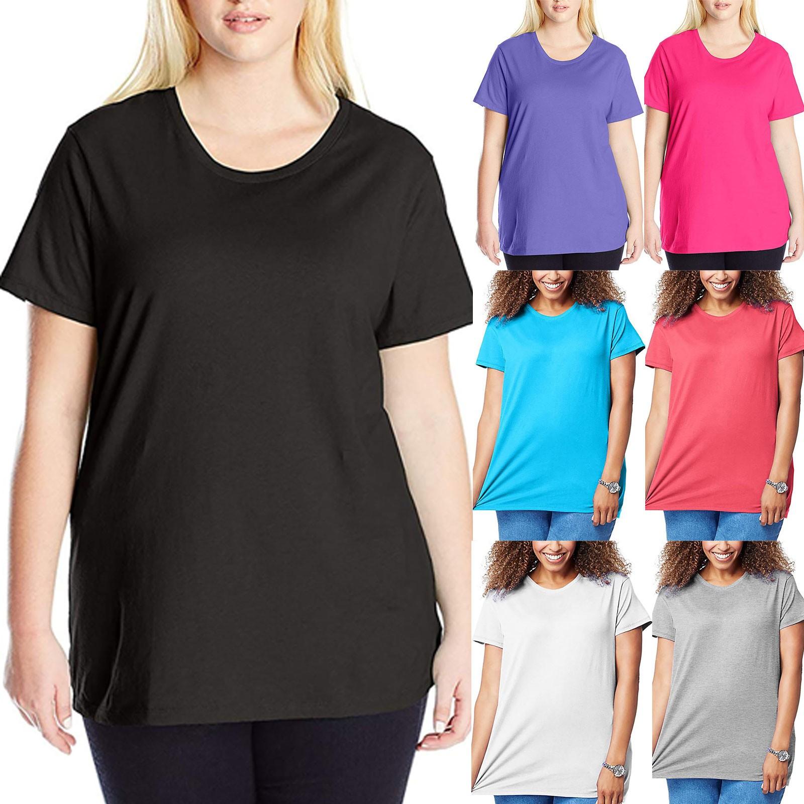 Misc – Moda damska Jednokolorowa koszulka z krótkim rękawem Plus rozmiar bluzki z okrągłym dekoltem XXL biały
