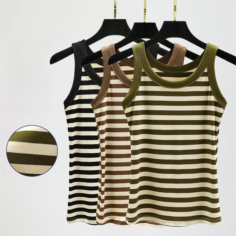 Misc – Na co dzień damski slim-fit z cienkim paskiem modne podkoszulki bez rękawów koszulka na ramiączkach z okrągłym dekoltem luźny letni podkoszulek w paski koszulki na ramiączkach M