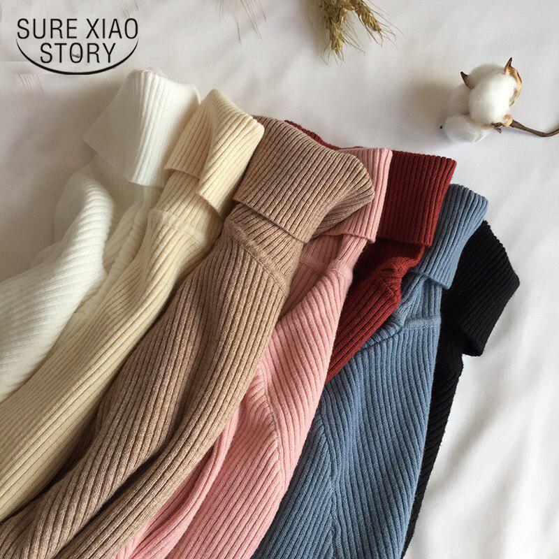 Prążkowany sweter damski sweter sweter zimowy wąski golf swetry z dzianiny kobiece miękkie ciepłe swetry z długim rękawem One Size beżowy