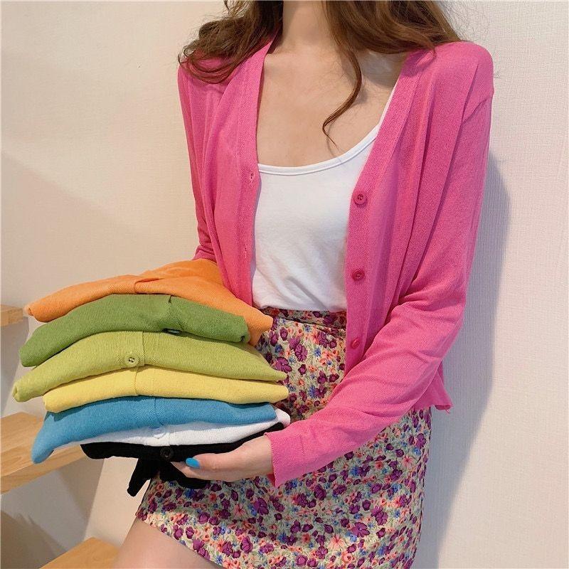 Misc – Summer Thin Candy Color Loose Sunscreen Cardigan Women Long Sleeve Ice Silk Knitted Cardigans Sweater Female Solid Casual Knitwear Tops 24611 One Size czarny
