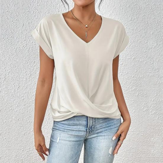 Misc – Summer Women Short Sleeve V Neck Shirts Solid Color Casual Breathable Top Versatile Fashion Blouse for Jeans Skirts M czarny