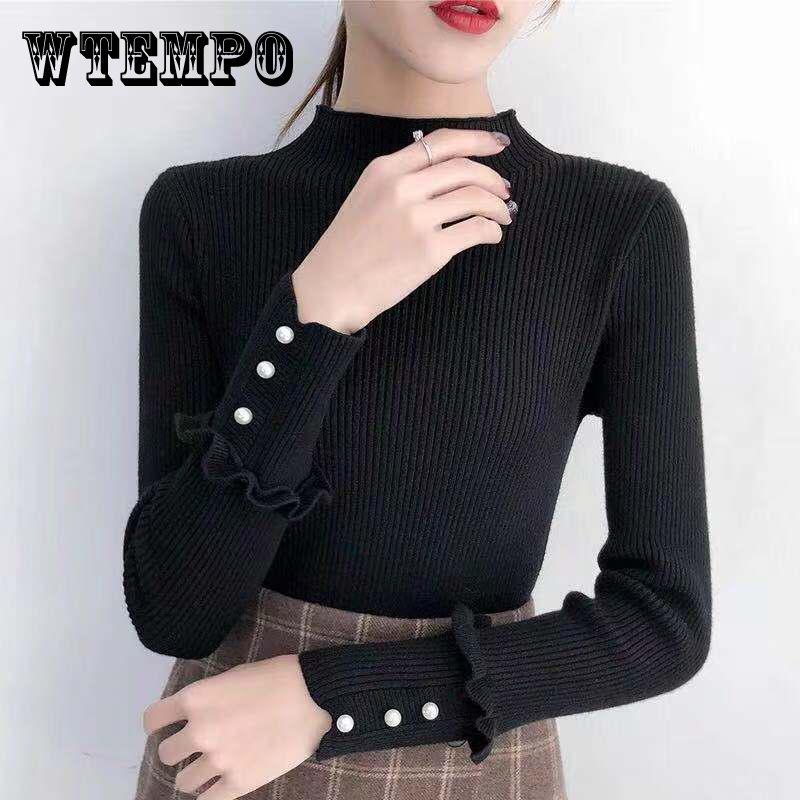 Misc – Sweater Women Slim Was Thin Long-sleeved Half-high Collar Pullover Knitted Bottoming Shirt L czarny