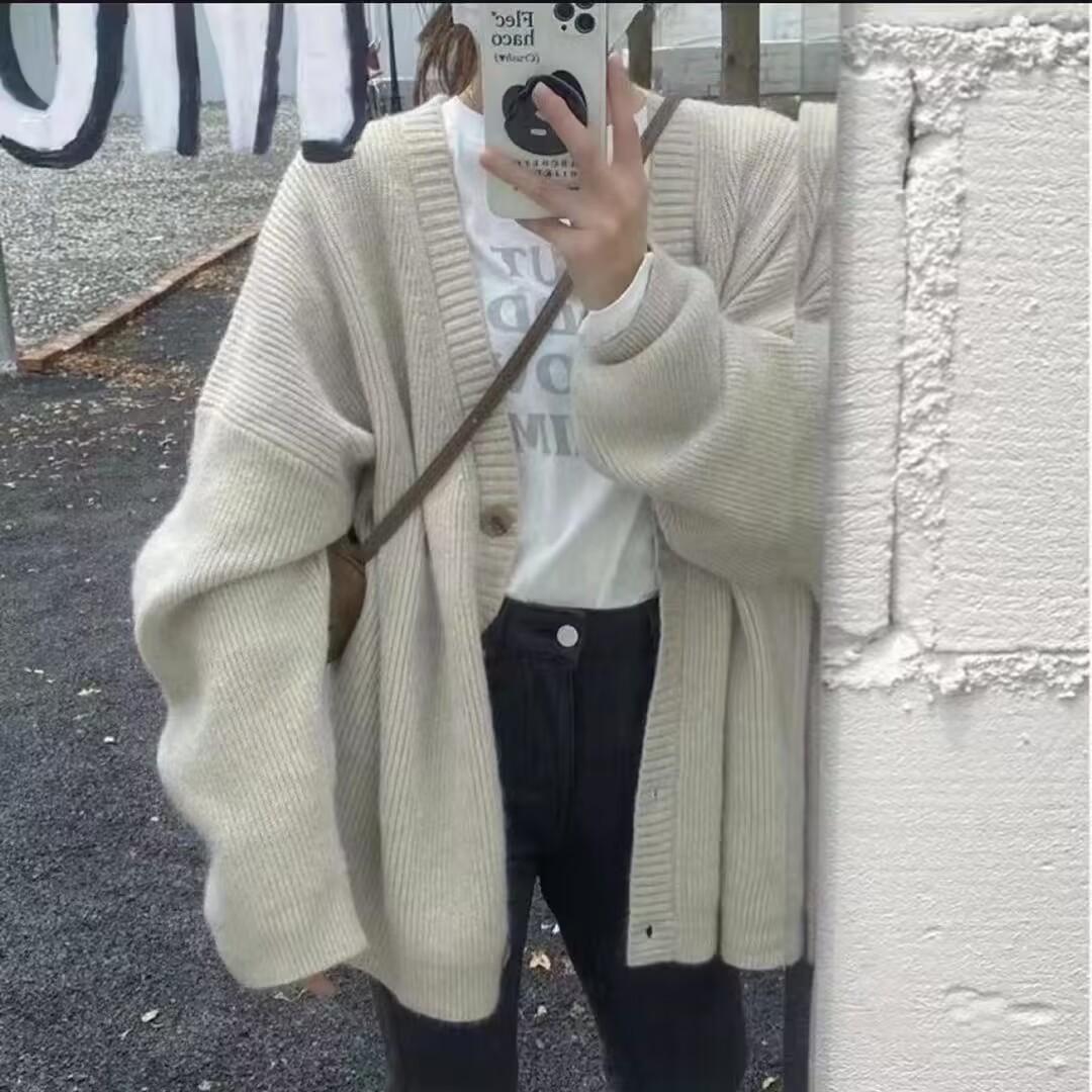 Misc – Sweter rozpinany damski 2023 wiosenny sweter dziergany damski solidny miękki kleisty luźna odzież wierzchnia z leniwym swetrem z dekoltem w serek One Size czarny