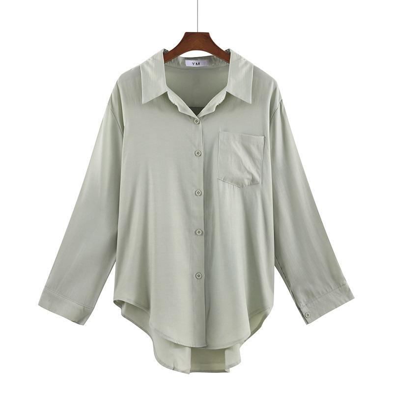 Misc – Wiosna jesień koreański kołnierzyk polo z długim rękawem luźne bluzki kardigan biurowy koszula topy damskie S