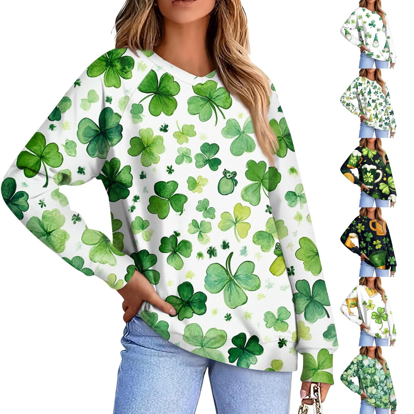 Misc – Women’s Casual Fashion Comfort Cuff V-neck St. Patrick’s Day Print Pullover Hoodie L kolor zielono-szary wojskowy